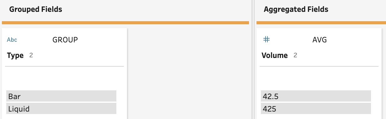 When using both these tables in Tableau Prep in exactly the same way, due to the null values, there are two different outputs. In Prep, adding an aggregation step after the Input and forming the average 'Volume' for each Type of product gives very different results.