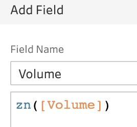 ZN() replaces a Null value for the data field that is placed inside the brackets with a zero. This is useful when you want the row to be considered in aggregations, especially averages like the example in the section above.