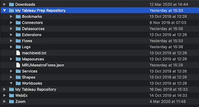 By downloading Prep Builder, you will have a folder added to your Documents folder that contains a lot of useful files and places to store flows and data sets as you develop them within Prep. Here is the view of my Documents Finder view on Mac (in Dark Mode).